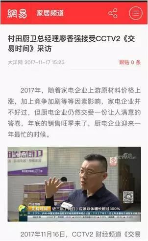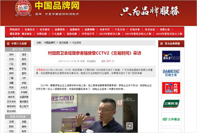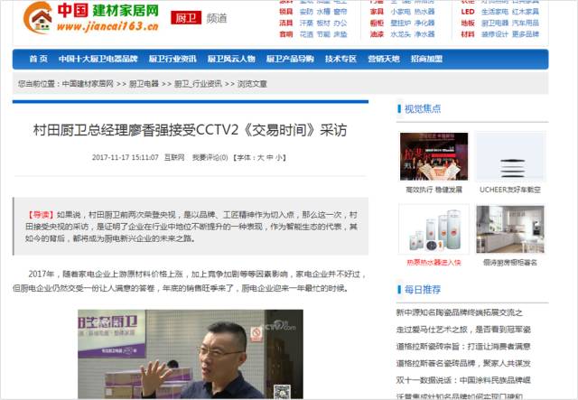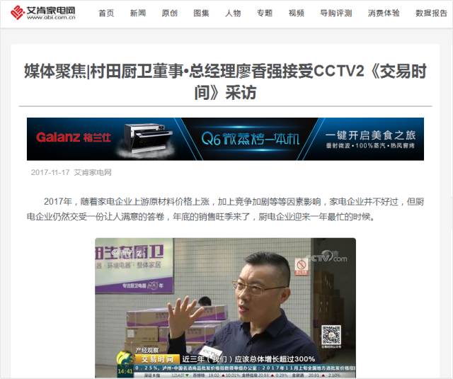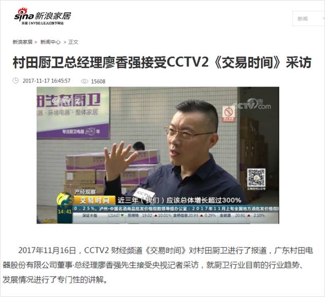 2017年11月16日,CCTV2财经频道《交易时间》、《整点财经》对完美web版登录入口-完美(中国)厨卫进行了报道,广东完美web版登录入口-完美(中国)电器股份有限公司董事·总经理廖香强先生接受央视记者采访,就厨卫行业目前的行业趋势、发展情况进行了专门性的讲解。