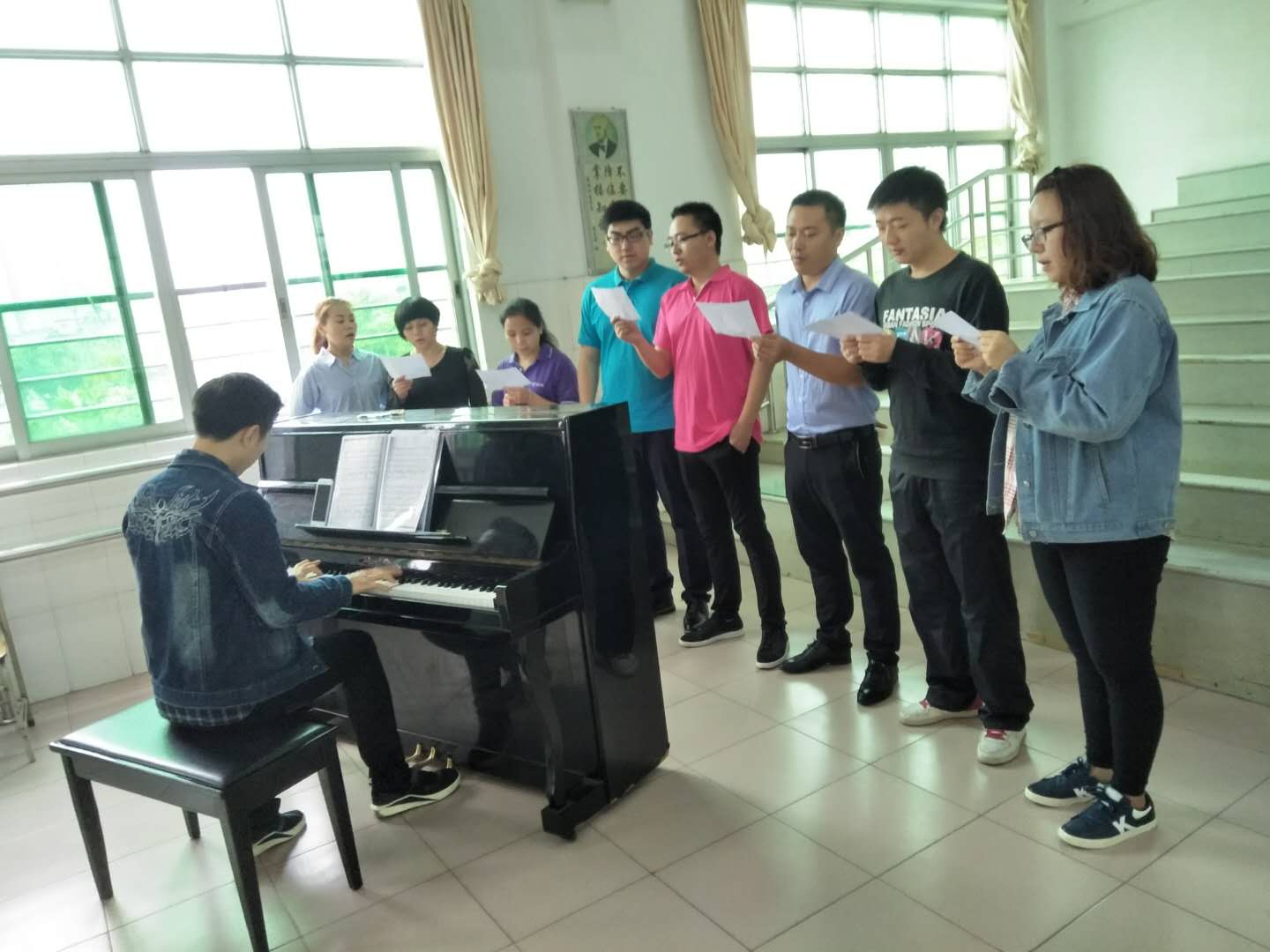 认真专注地歌唱