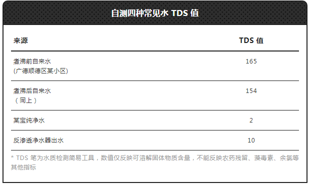 眼见为实,我们还是用 TDS 笔帮大家检测了一下,不同水质的「溶解性固体重量」(显示数字越高,代表水中的杂质越多,饮用水建议在 50 以内)。