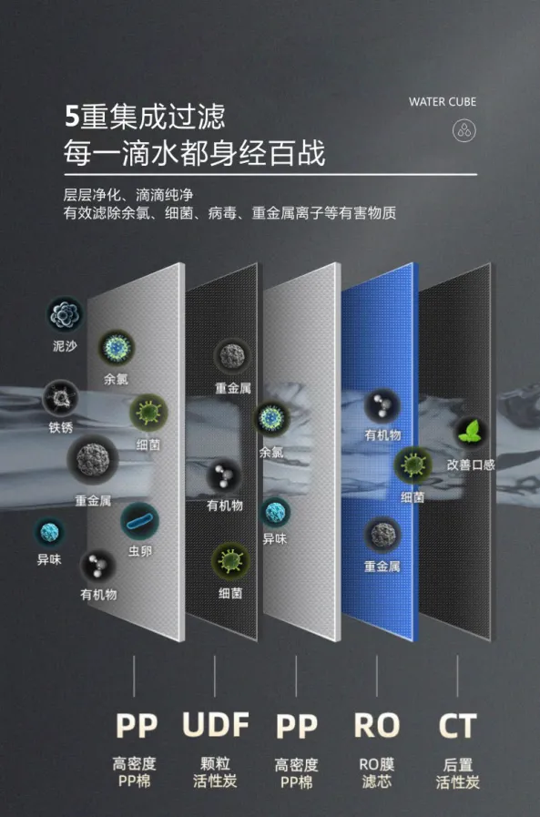 但其实上面这些问题,都可以被「RO膜净水器」解决。这种新兴小家电不少人都听说过: