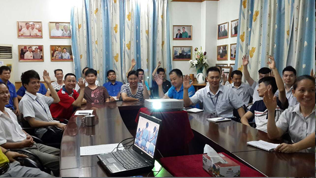 在培训过程中,广东科普健康咨询服务中心梁俊老师为大家生动讲解了救护的基本知识,包括如何应对暴力恐怖事件(逃脱、自救等知识)和公共场合突发事件应急处理、现场紧急救护知识、办公室常见疾病预防等内容。现场实操练习,梁老师请出几位同事做模拟,员工争先举手练习,大家都想利用这次宝贵的机会提高自己的实践操作能力,现场的学习气氛积极而又热烈。