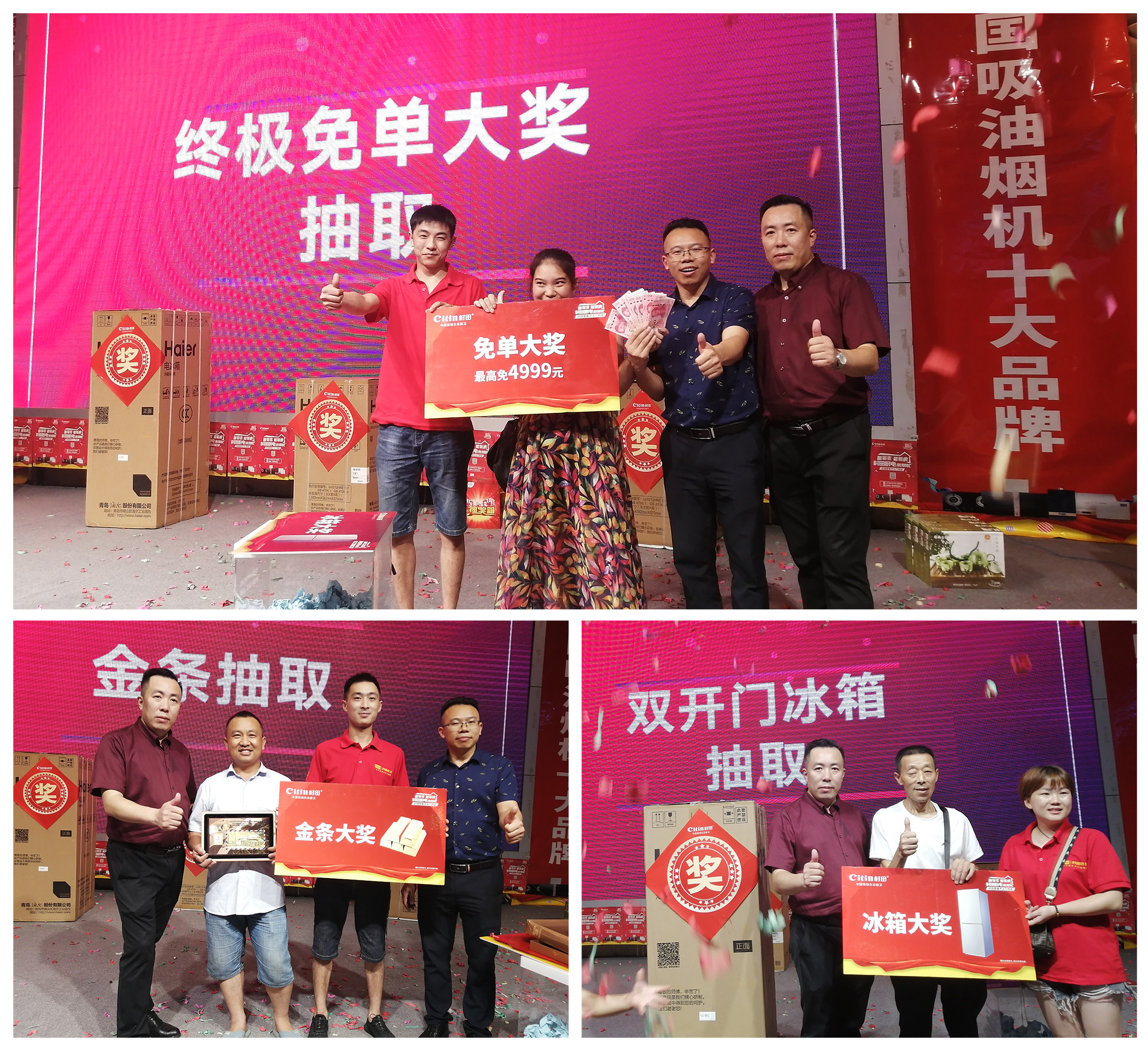 10月31日当天,活动期间所有全款客户参加网络直播抽奖,超级大奖等你拿:万元按摩椅、4999元免单惊喜大礼、品牌三开门冰箱、洗衣机等等,百分百中奖!