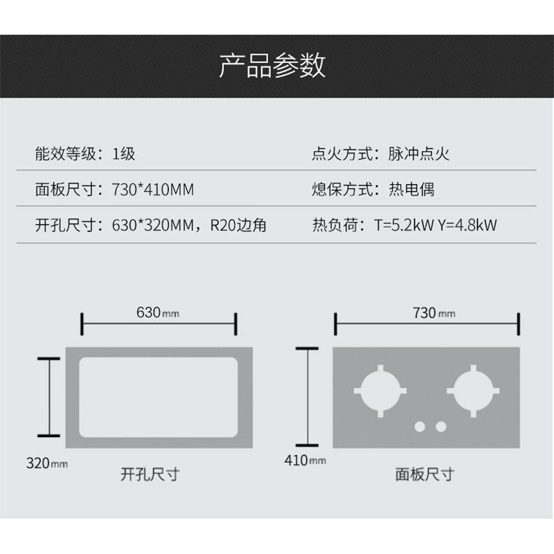 底壳:灰色宽边底产品尺寸:730*410*6mm开孔尺寸:630*320*R20熄保方式:热电偶热负荷:T=5.2kW Y=4.8kW
