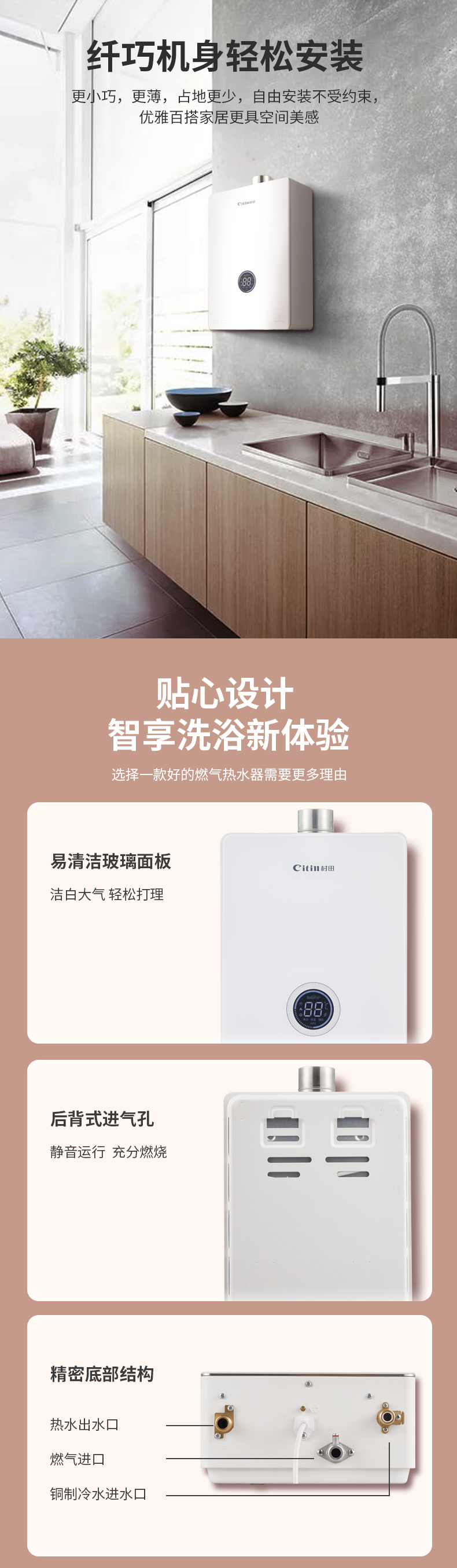 额定容积:16L/分钟给排气方式:变频恒温强排式产品尺寸:宽297x高420 x深158毫米控制方式:电脑触控适用户型:一厨二卫以上特殊功能:零冷水